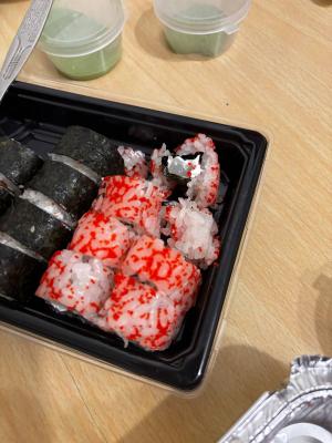 Доставка 2 часа (обычно максимум час) .В роллах удивительным образом оказалась кость (ролл с курицей). Запеченные роллы приехали холодными. Сразу чувствуется что со скидкой заказ . Ранее много раз заказывала здесь, но сегодня удалила приложение.